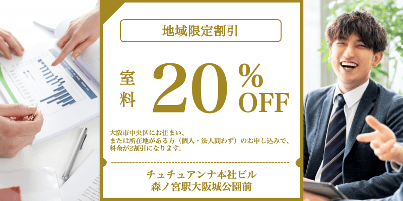 大阪市中央区にお住まい、または所在地がある方:室料20%オフ