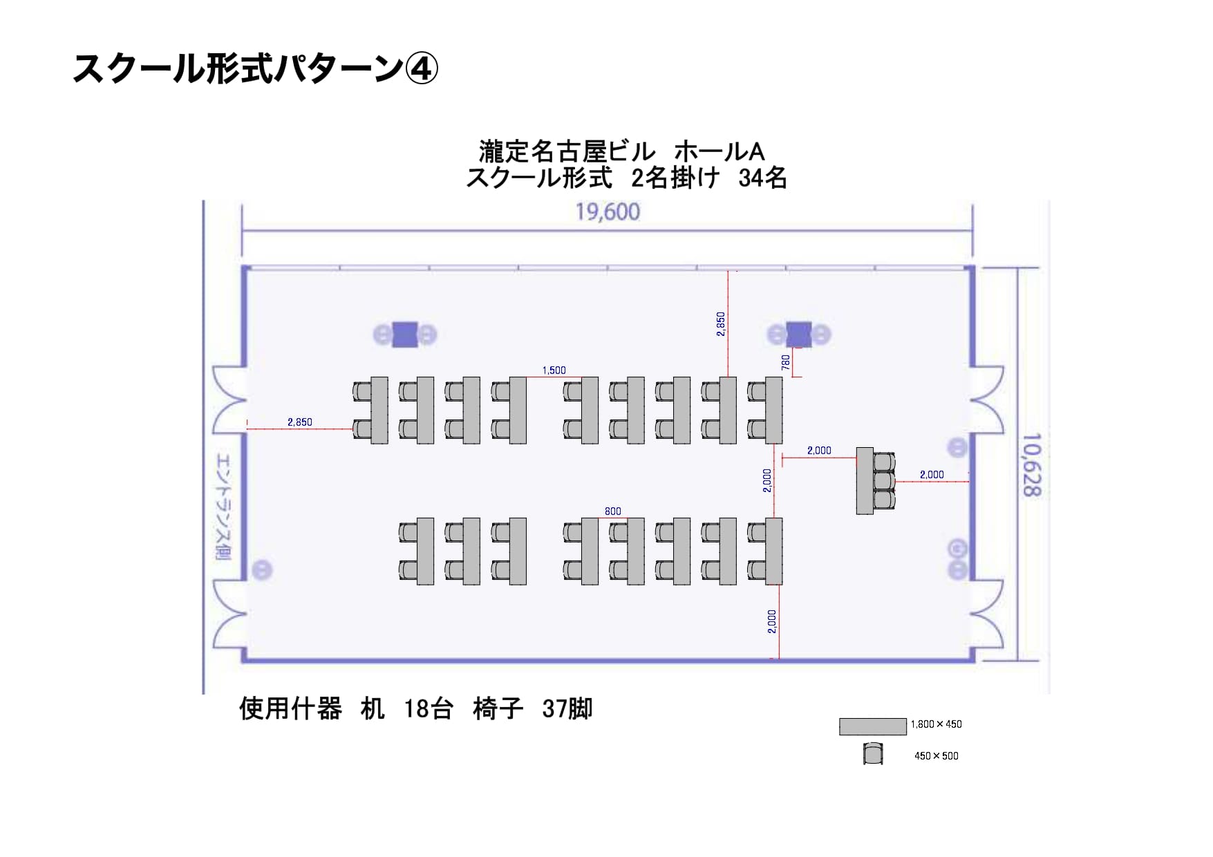 ホールA_スクール形式パターン4_2名掛け 34名 [ 品番 ] B000-096-104 |