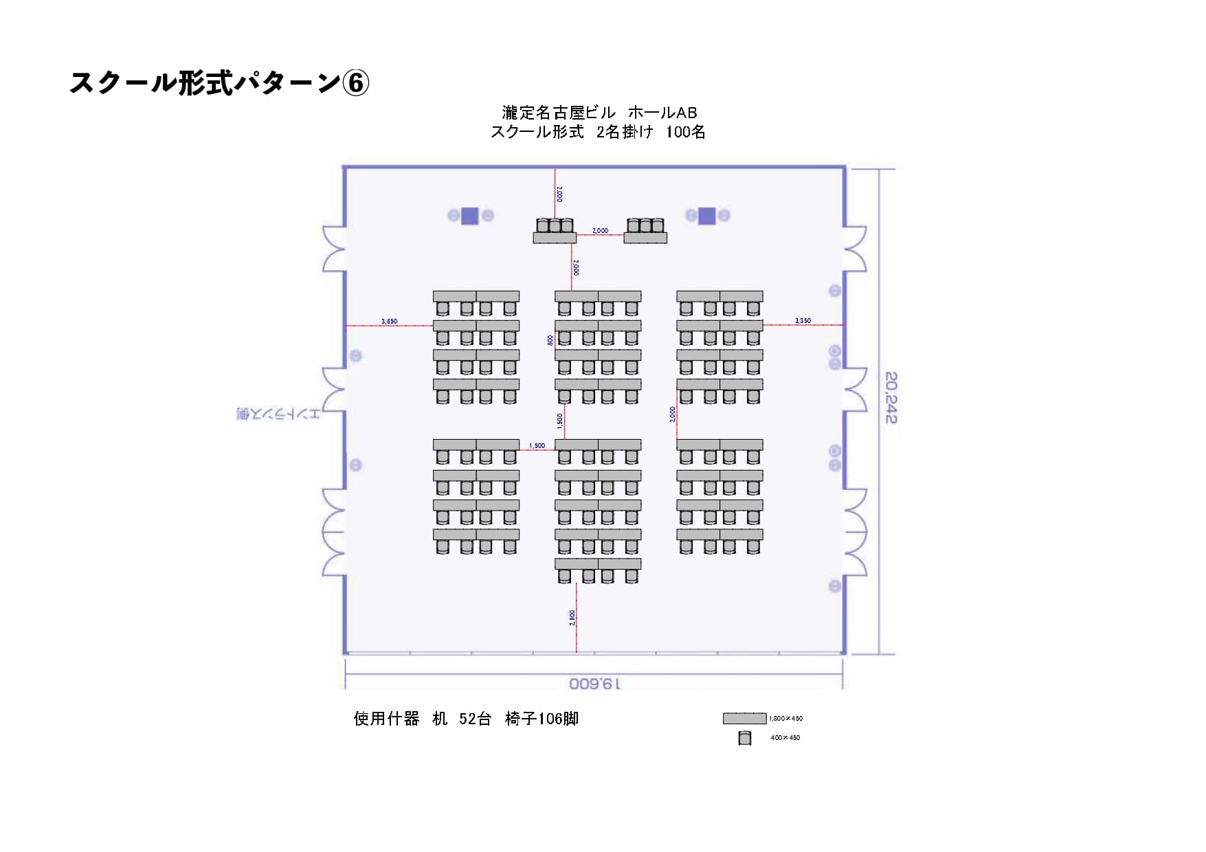 ホールAB_スクール形式パターン6_2名掛け 100名 [ 品番 ] B000-096-120 |