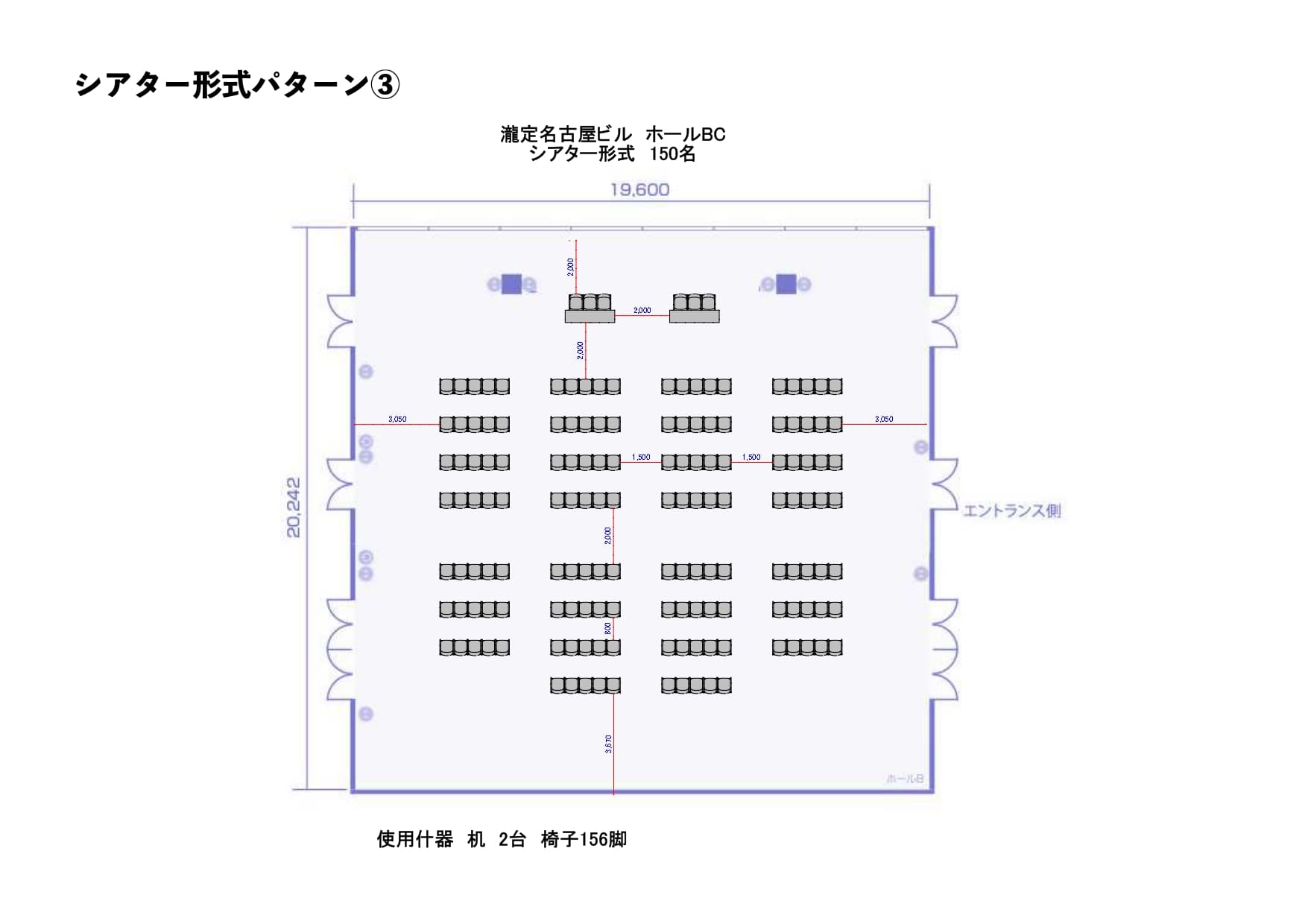 ホールBC_シアター形式パターン3_150名 [ 品番 ] B000-096-132 |
