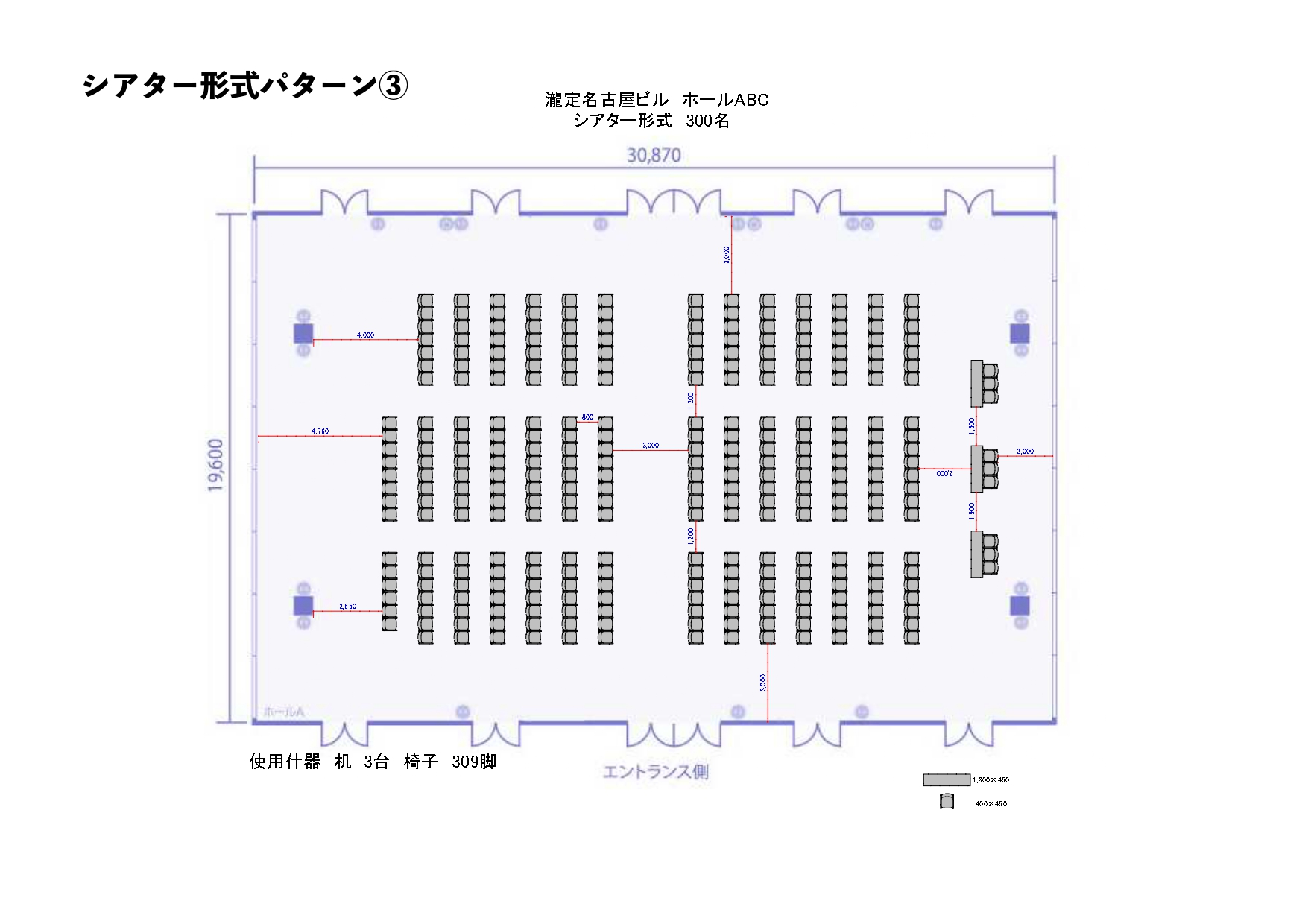ホールABC_シアター形式パターン1_400名 [ 品番 ] B000-096-137 |