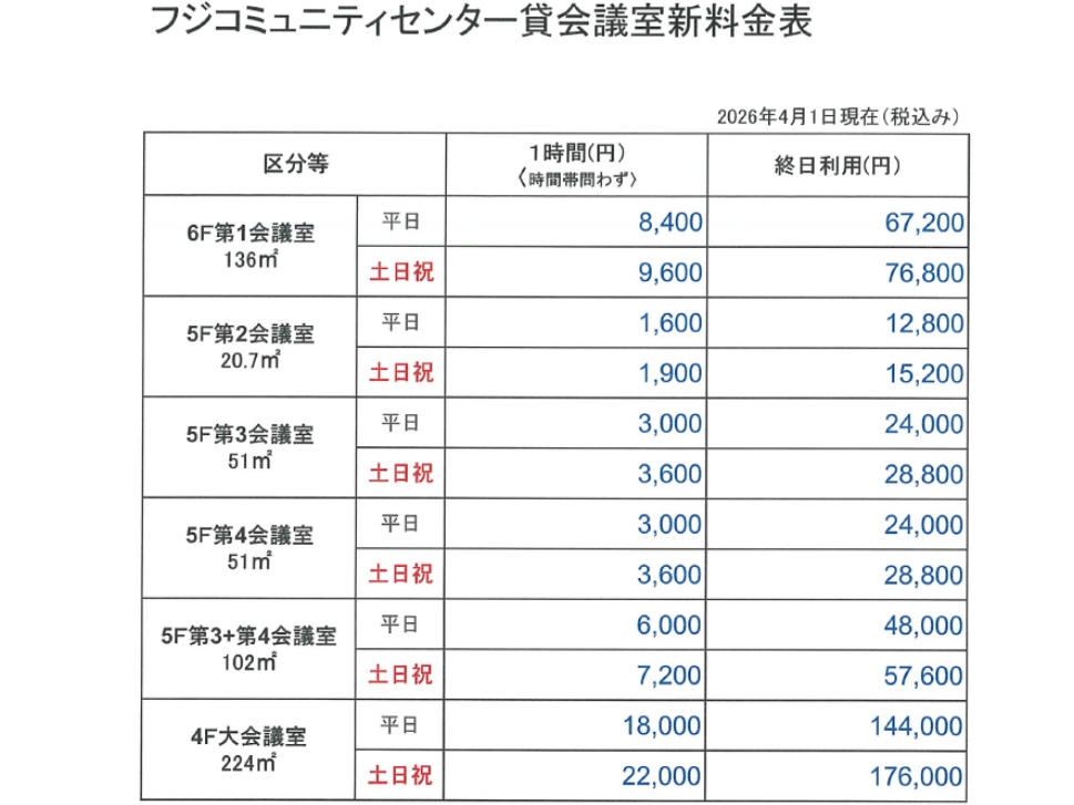 2026年4月より料金改定がございます。