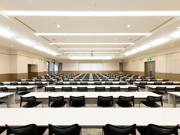 ホテルフクラシア大阪ベイのホテル内に、学会や式典に適した講堂、多彩な映像演出ができるコスモホールから、少人数でもご利用可能な会議室を完備。ワーキングスペース、自習スペースなど、ゆとりある共有スペースは自由にお使いいただけます。