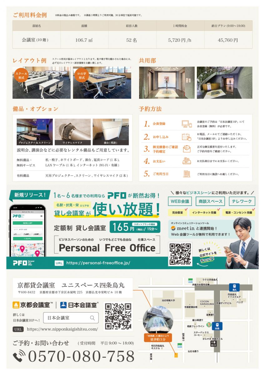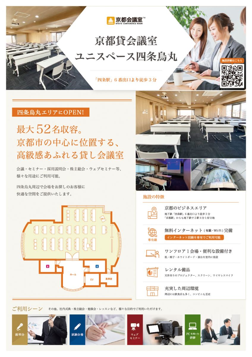 烏丸駅徒歩3分!「インターネット専有線&Wi-Fi無料」京都ならではの”高級感”漂う貸し会議室