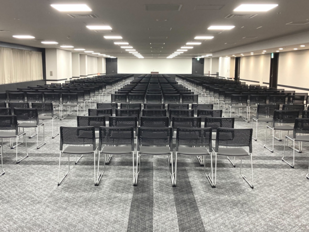 柱もなく見通しが良いので、セミナー、試験、展示会等、スケールの大きなあらゆるイベントに対応致します。