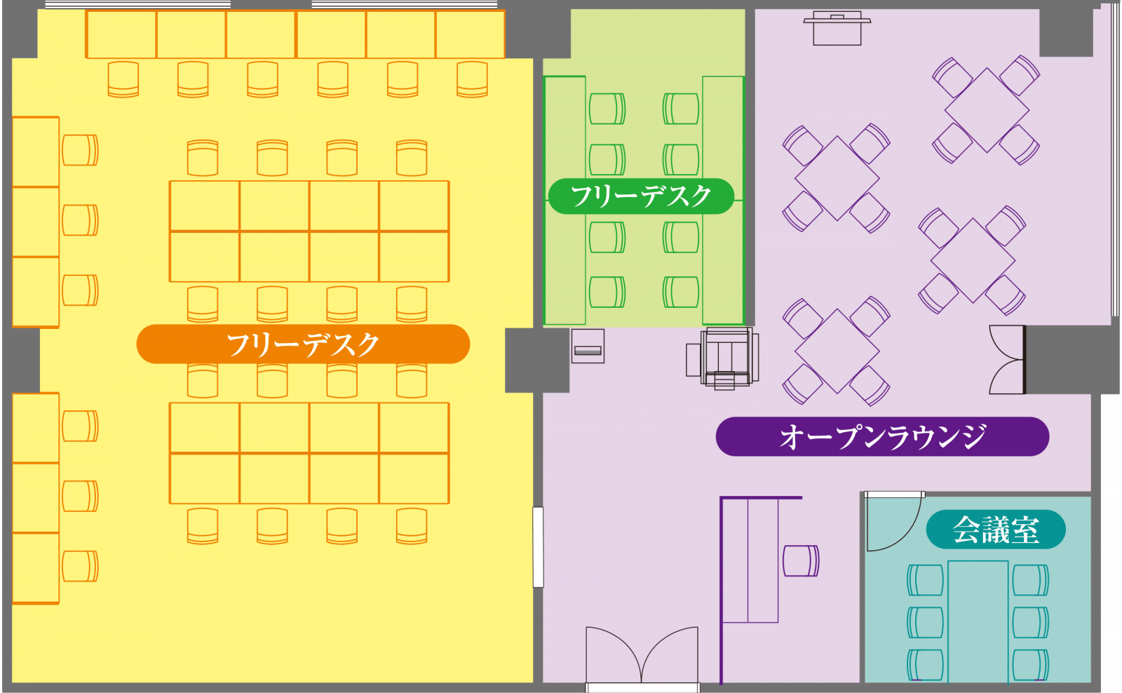1時間からご利用可能な他、無料Wi-Fiを完備しており、オンライン会議やリモートワークスペースとしても活用頂けます。