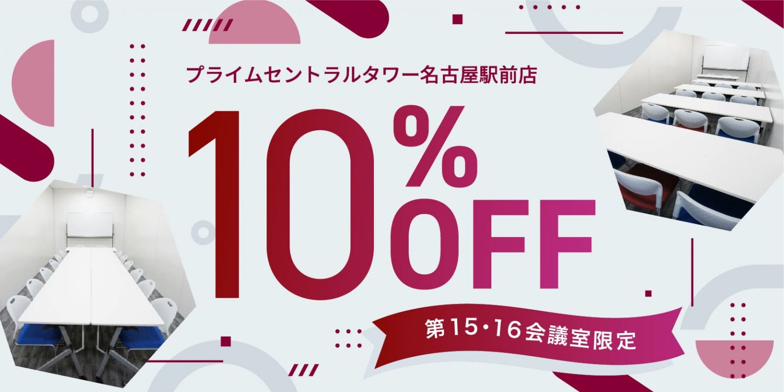 【プライムセントラルタワー名古屋駅前店限定】15・16会議室限定♪室料10%オフキャンペーン