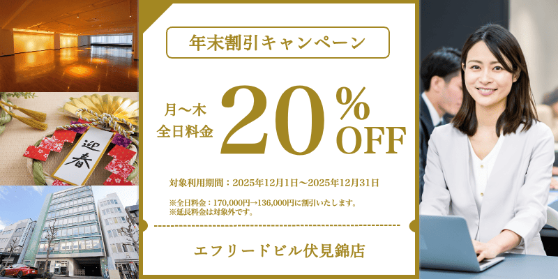 【エフリードビル伏見錦店】室料20%オフ♪年末割引キャンペーン
