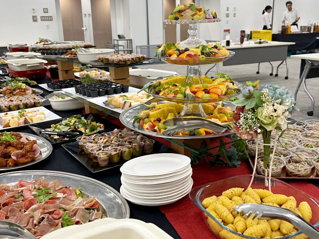 会議やセミナー後の懇親会では、移動なしでケータリング対応できる会場が便利。参加者同士の距離も縮まり、自然なつながりが生まれます。