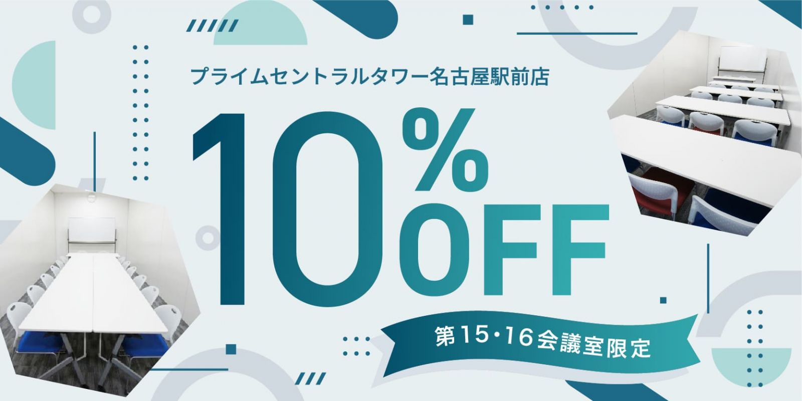 【プライムセントラルタワー名古屋駅前店限定】15・16会議室限定♪室料10%オフキャンペーン
