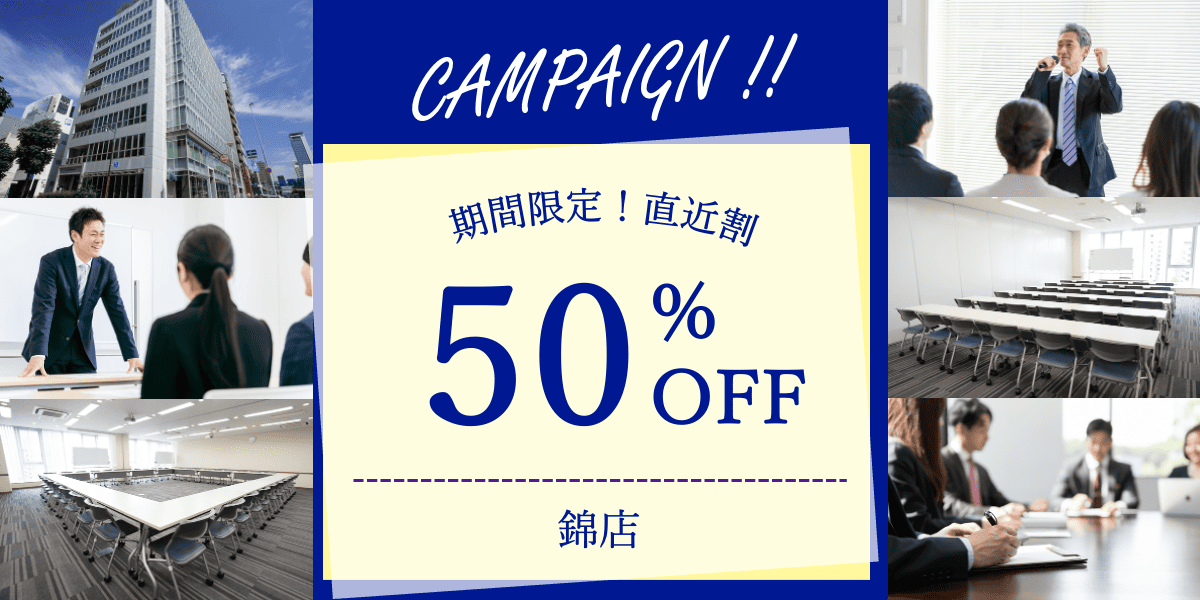 キャンペーン期間中に第3,4,3+4会議室を直近ご利用のお客様室料50%オフと割引いたします。