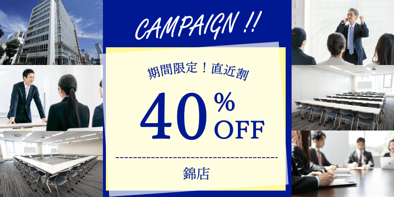 【錦店】直近予約限定!室料40%オフキャンペーン|日本会議室