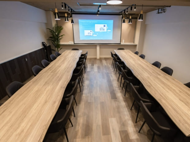 名古屋市中心部・丸の内エリアに位置し、最大28名まで利用できる使い勝手の良い貸会議室です。ナチュラルで落ち着いた雰囲気の室内は、社内会議や打ち合わせはもちろん、研修、セミナー、オンライン会議、テレワークの拠点としても幅広く活用できます。