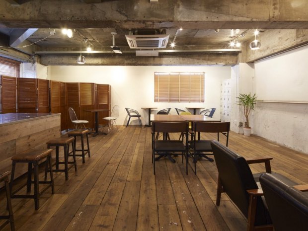 木目調の柔らかい雰囲気が特徴のカフェスタイルのキッチン付きレンタルスペース。